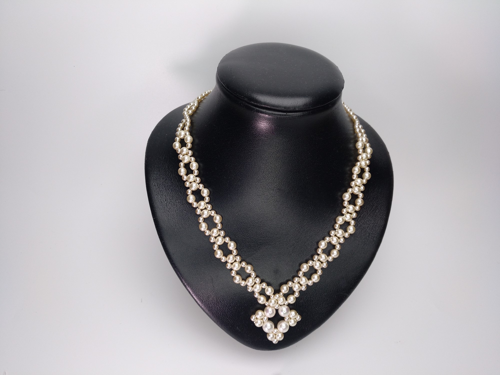 Collar largo para mujer, comunmente denominado «La matine», con un largo de 50 cms, y su extension total a 55 cms. elaborado artesanalmente en perlas de tres tamaños, rematando su cierre con mosqueton plateado, hecho en Granada, España, producto «UNICO DISEÑO Y ORIGINAL», entregandose en caja de carton con tapa, de joyeria, para su presentacion y manipulacion. Se lo puede observar en el canal de Youtube «collares y pendientesmz, en su pagina web: collares y pendientesmz.es, o en la pagina web «mineralesenventa.com». En el canal de youtube, su artesana, enseña sus habilidades, utilizando su ingenio, con los mejores productos utilizados de plaza, y el manejo de sus herramientas.